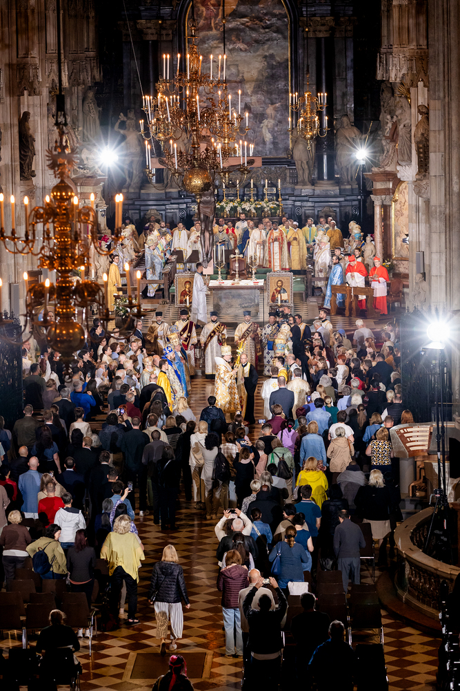 Gottesdienst im byzantinischen Ritus war Mittwochabend liturgischer Höhepunkt der Wiener Vollversammlung der Bischöfe der katholischen Ostkirchen Europas - Kardinal Schönborn in Predigt: "In der Liturgie sind wir ganz besonders mit dem Himmel verbunden", gerade in Zeiten des Krieges und der Not. Wir waren mit der Kamera dabei.