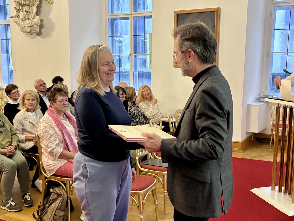 Time to say goodbye: Es ist eine gute Tradition in der Erzdiözese Wien, jedes Jahr die frisch gebackenen Pensionistinnen und Pensionisten zu verabschieden und ihr Engagement zu würdigen. Am Donnerstag, 25. September 2025, waren unsere ehemaligen Mitarbeiterinnen und Mitarbeiter zu einer Führung im Dom Museum Wien und einem anschließenden Festakt im Festsaal des Erzbischöflichen Palais eingeladen. Die Verabschiedung in den Ruhestand wurde von flotten Klängen junger Musikerinnen des „Trio Terzetto“ begleitet – darunter ein schwungvoller Tango von Astor Piazzolla.