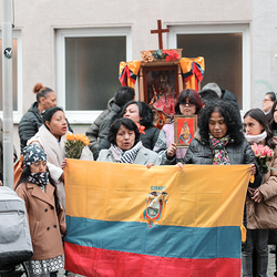 Im Rahmen des Encuentro - Treffen der Plattform Weltkirche feierte die lateinamerikanische Gemeinde gemeinsam mit Bischof Mons. Anibal Nieto Guerra aus der Partnerdiözese der ED Wien, San Jacinto in Ecuador, gemeinsam mit der Wiener Pfarre Akkonplatz die Heilige Messe in der Wiener Kirche St. Florian.